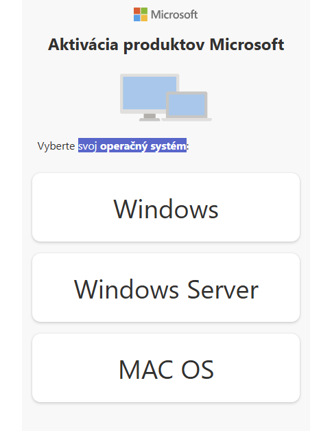 | 7. Po prihlásení zvoľte možnosť "Aktivácia produktu Microsoft" (viď. obrázok nižšie). |